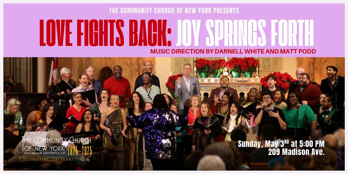 Following two powerful concerts in May and December 2025, the Community Church of New York is excited to announce the 3rd concert in the series: Joy Springs Forth.
