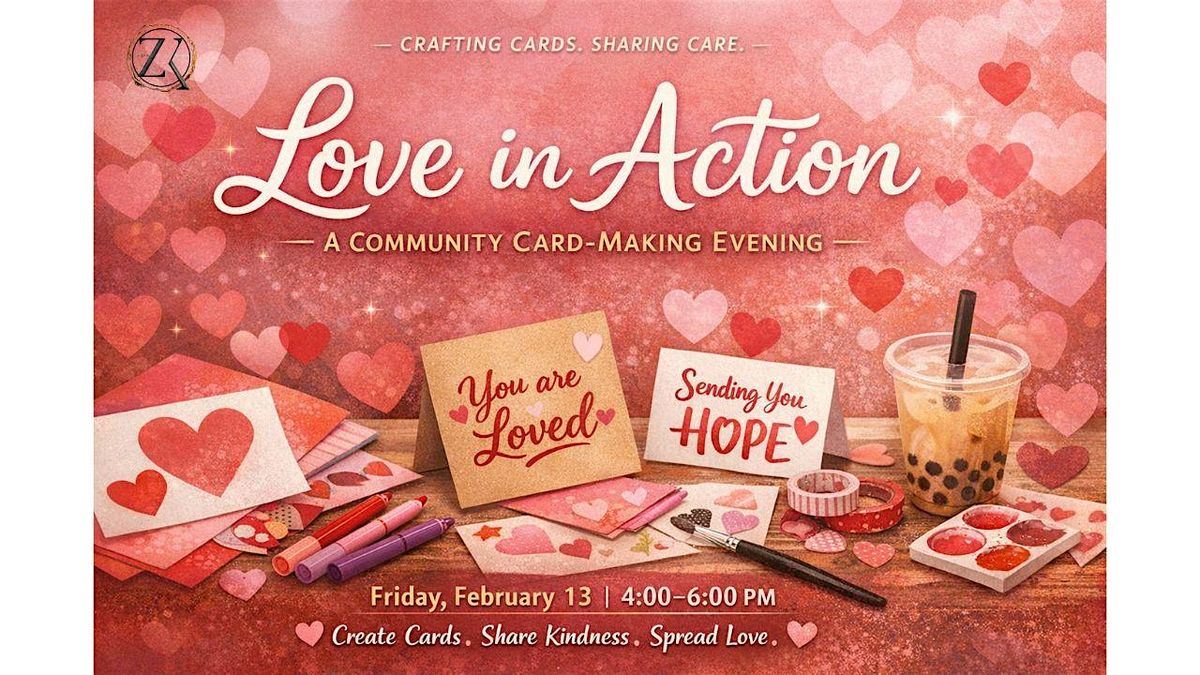 Join us on Saturday, February 7th, from 1:00–3:00 PM at the Martin Paley Conference Room - 3rd Fl for Love in Action: A Community Card-Making Evening, a welcoming space to connect, create, and care as a community.