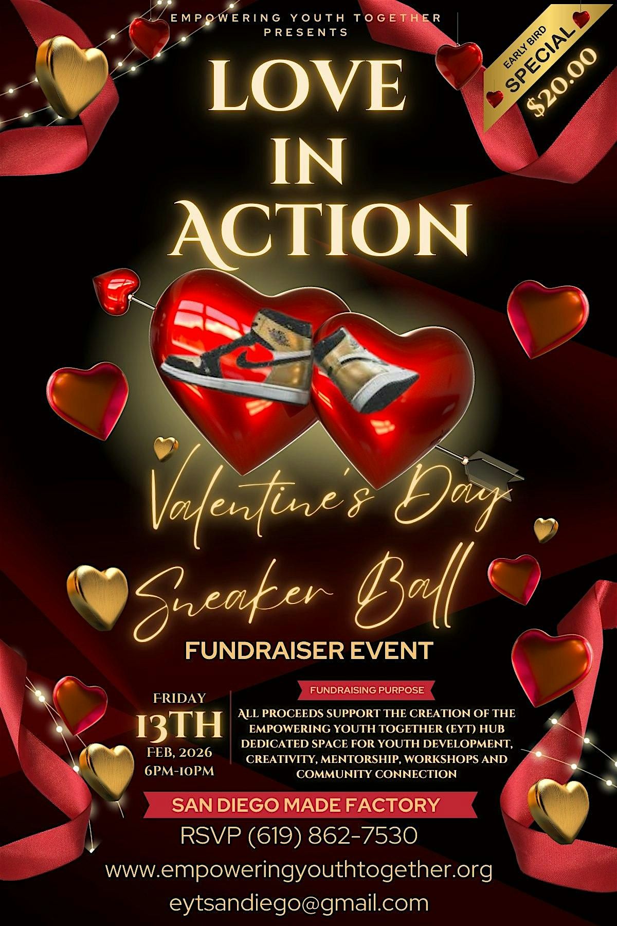 A night where style meets purpose! Join us for our Valentine Sneaker Ball Fundraiser, an unforgettable evening celebrating love & community!
