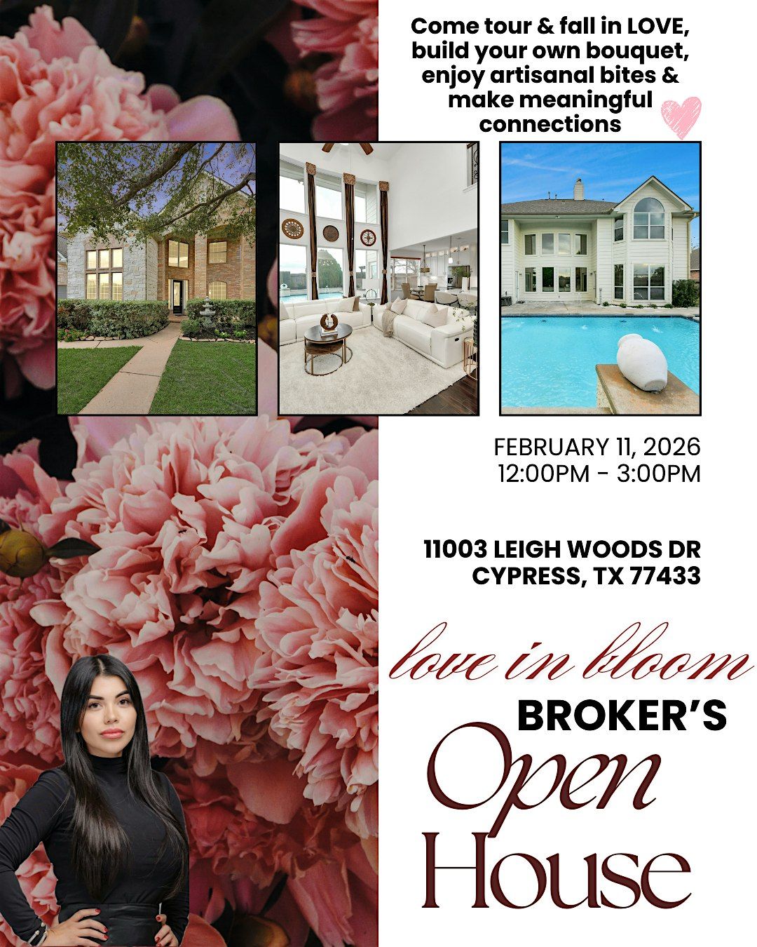 Join us for a special Broker’s Open House where real estate meets connection. Come tour this beautiful Cypress home, build your own bouquet
