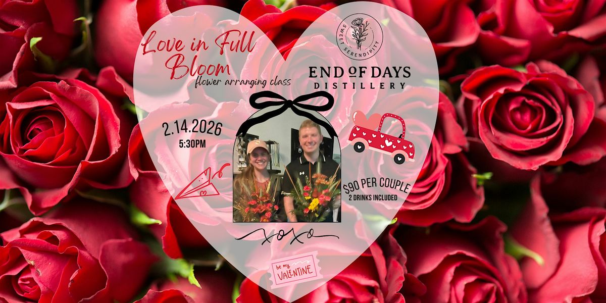 Try something new this Valentines day! Learn the basics of floral design with local NC blooms at End of Days Distillery! This class will feature Roses, other Pink, White and Red blooms, and unique greenery. Guided instruction will teach you all the tips and tricks you need to make a beautiful arrangement to bring home with you.
