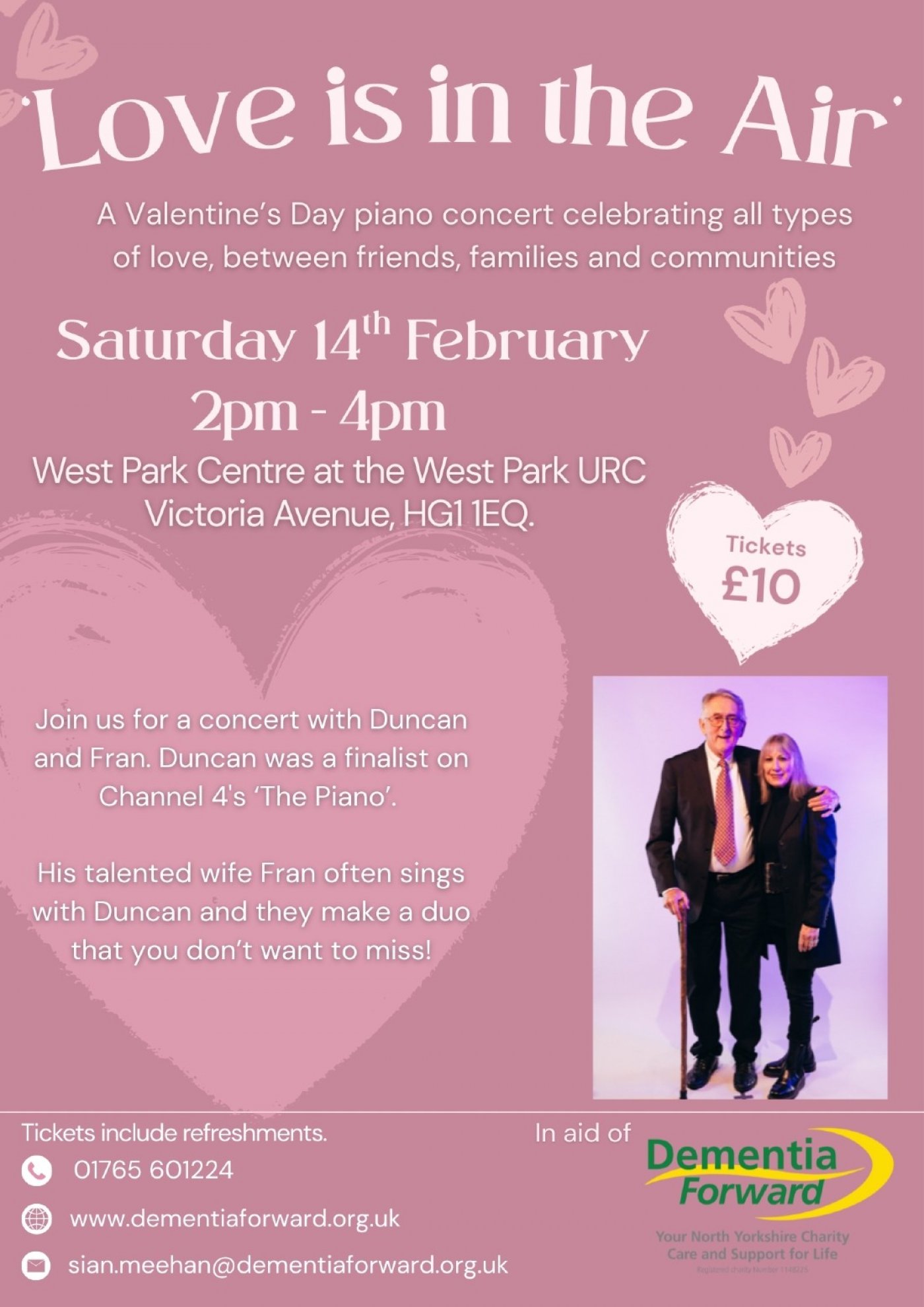 Join us for a concert with Duncan and Fran. Duncan was a finalist on Channel 4's ‘The Piano’.