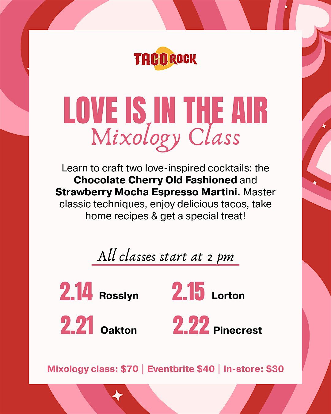 Love is in the Air Mixology Class at Taco Rock Rosslyn!
