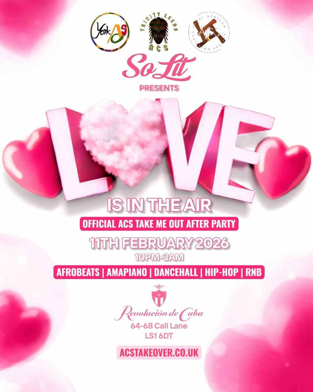💗 LOVE IS IN THE AIR 💗Official ACS “Take Me Out” After PartySoLit UK presents the ultimate Valentine’s season link-up in partnership with Leeds ACS, Trinity Leeds ACS & York ACS— bringing you an unforgettable night!
