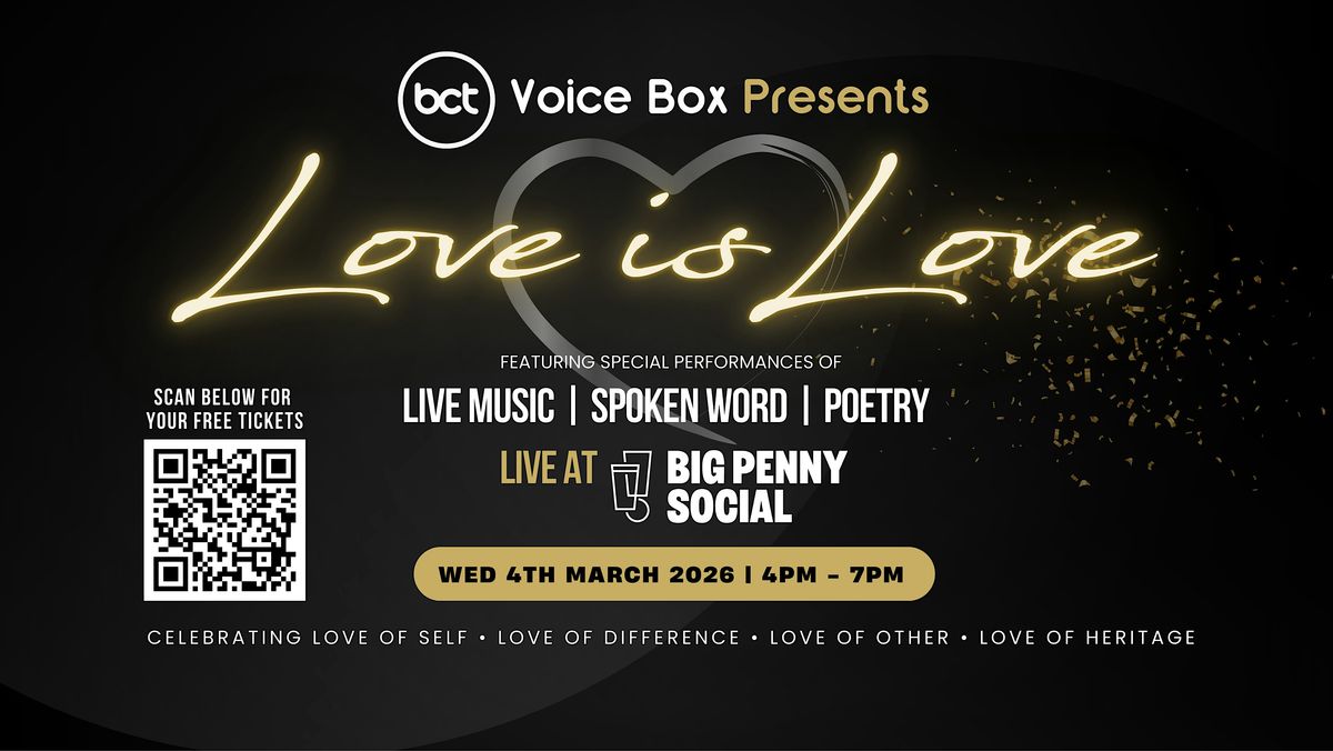 BCT Voice Box presents Love is Love 2026 - an event specifically created to celebrate all people from all backgrounds, heritage, ages, gender identities, abilities, and expressions.