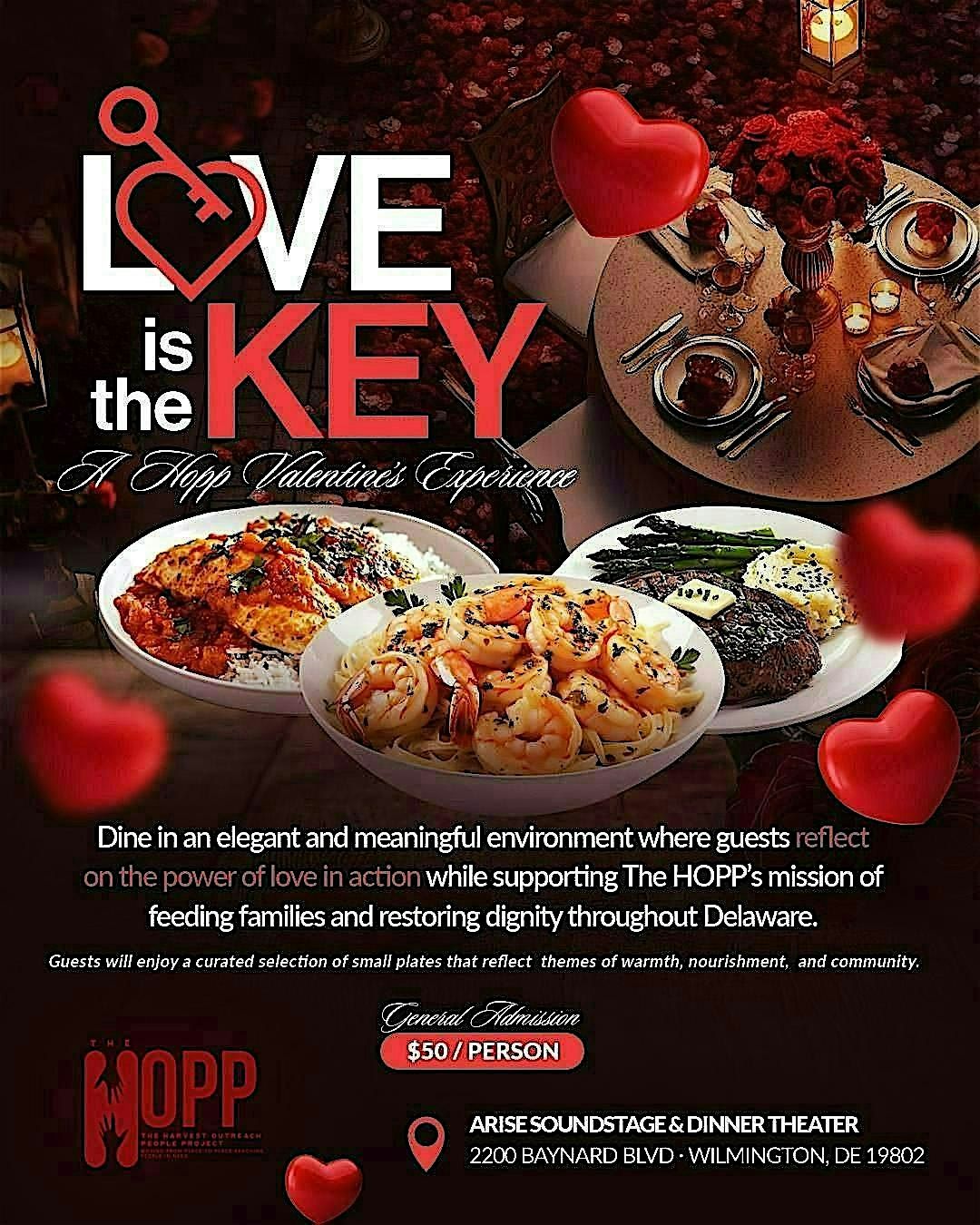 Join us for Love Is the Key, a special Valentine’s experience hosted by The Harvest Outreach People’s Project (The HOPP). This intimate evening invites guests to dine in an elegant, meaningful setting while reflecting on the power of love in action.