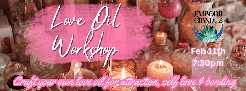 Join us on February 11th at 7:30pm for a beautiful, hands-on evening where we’ll be crafting our very own custom love oils perfect for attraction, self-love, romance, and deep emotional bonding.