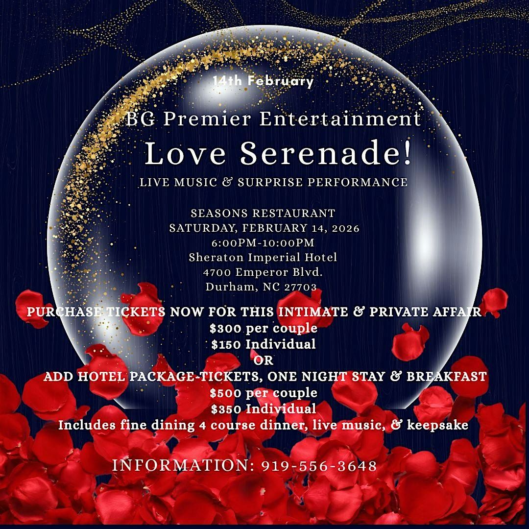 Prepare to experience a night designed exclusively for those who cherish love, connection, and unforgettable moments. Love Serenade brings together fine dining, live entertainment, and an atmosphere crafted to celebrate the one who holds your heart. From the gourmet four‑course dinner to the champagne, music, and surprise performances, every detail sets the stage for an intimate and luxurious celebration.