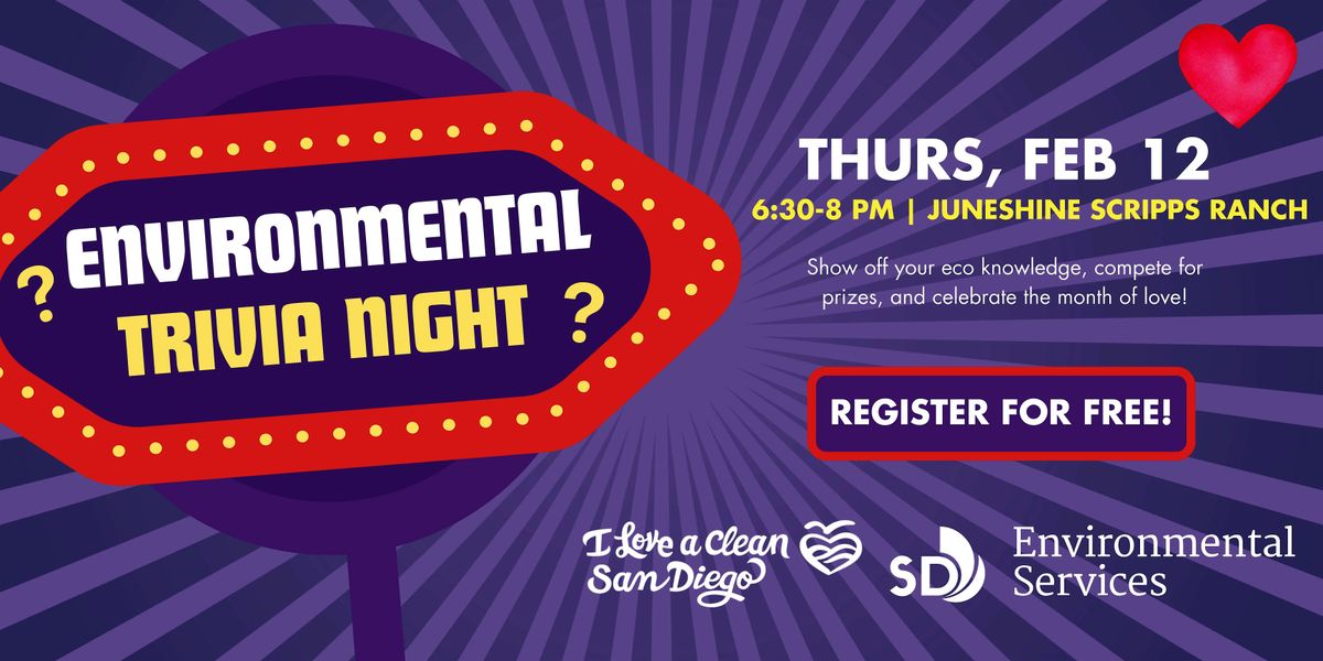Come celebrate the month of love and show us how much you love the earth! Grab your friends, your partner, or come solo and join us on Thursday, February 12, at 6:30 p.m. at Juneshine Scripps Ranch for Environmental Myth Busters Trivia Night.