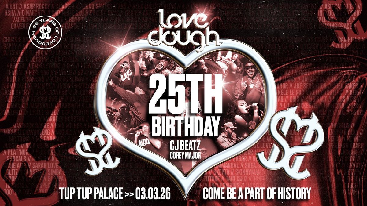 ❤️💲 LOVEDOUGH – 25TH BIRTHDAY💲❤️Tuesday 3rd March 2026Tup Tup Palace, NewcastleCome be a part of history… Founded in Leeds in February 2001, LoveDough took its name from “I Love The Dough” by The Notorious B.I.G. & JAY-Z and began as a party deep rooted in Hip Hop & RnB.Fast-forward 25 years, and LoveDough has grown into a global brand, touching down in 40+ cities worldwide, hosting events with the crème de la crème of UK and US based talent, while always staying true to the music, the people, and the culture.
