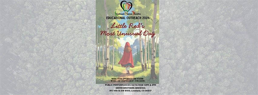 Loveland Opera Theatre's Dahlen Education Outreach Program and the Educational Outreach Artists will perform Little Red’s Most Unusual Day, which is a twist on the classic Little Red Riding Hood, with music by Offenbach and Rossini and Libretto by John Davies.