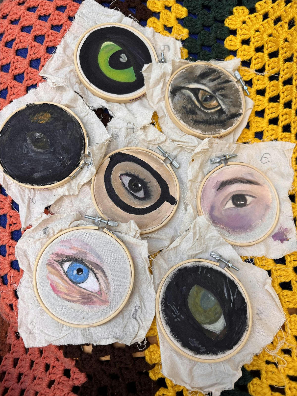The 'Bella Dina' project honours both mine and Pontypridd's connection into Welsh-Italian heritage, including present day businesses like Zucco's. As a play on the Italian, 'Bella Donna' (Beautiful woman), the 'Bella Dina' dress, worn by me, is a suitably oppulany, dramatic and romantic celebration of love. This is depicted in the form of over 50 (and counting) 'lover's eye' paintings of my own loved one's, Zucco's owner, Enrico's family, and those created by members of the local community. In addition to celebrating love, connections between both Welsh and Italian communities and the people of Pontypridd are commemorated, adorned in pearls, beads and golden thread.