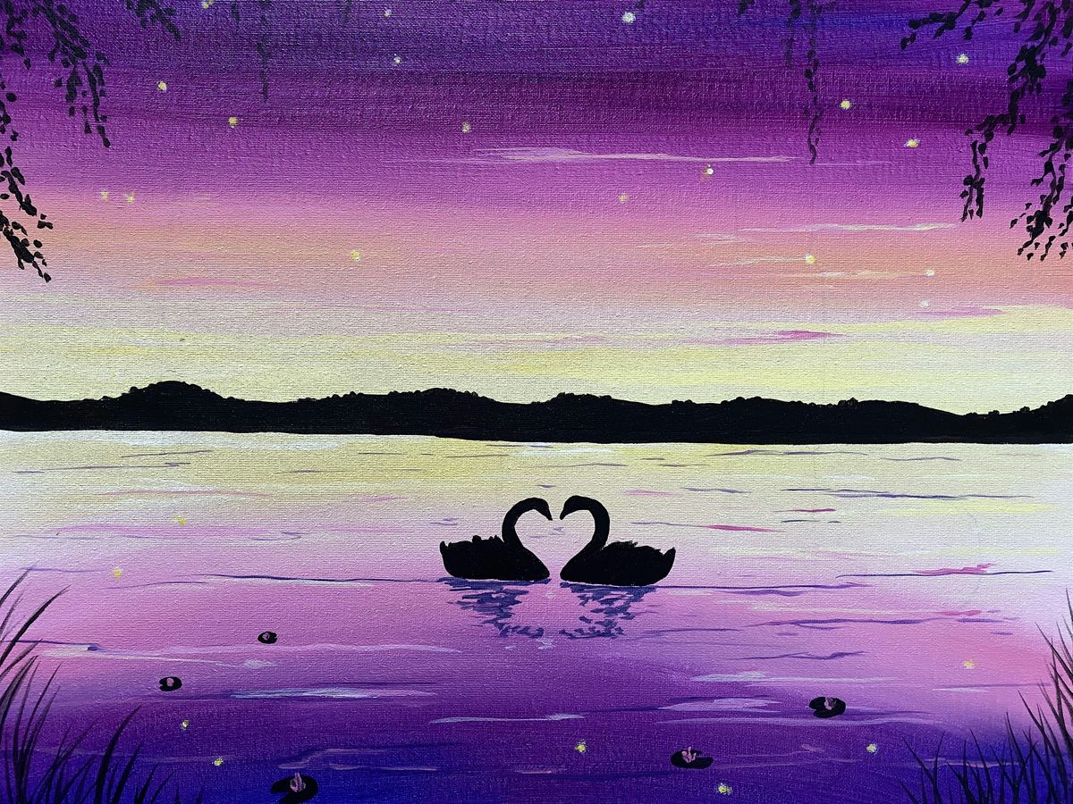 Enjoy a sip and paint night out with your friends and loved ones as we paint this Loving Swans painting!