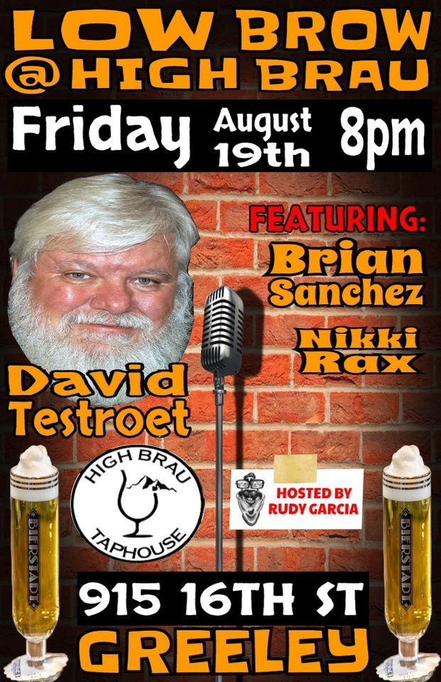 Greeley's premier Stand-up comedy showcase with David Testroet, Brian Sanchez, NIkki Raxand your host - Rudy Garcia.