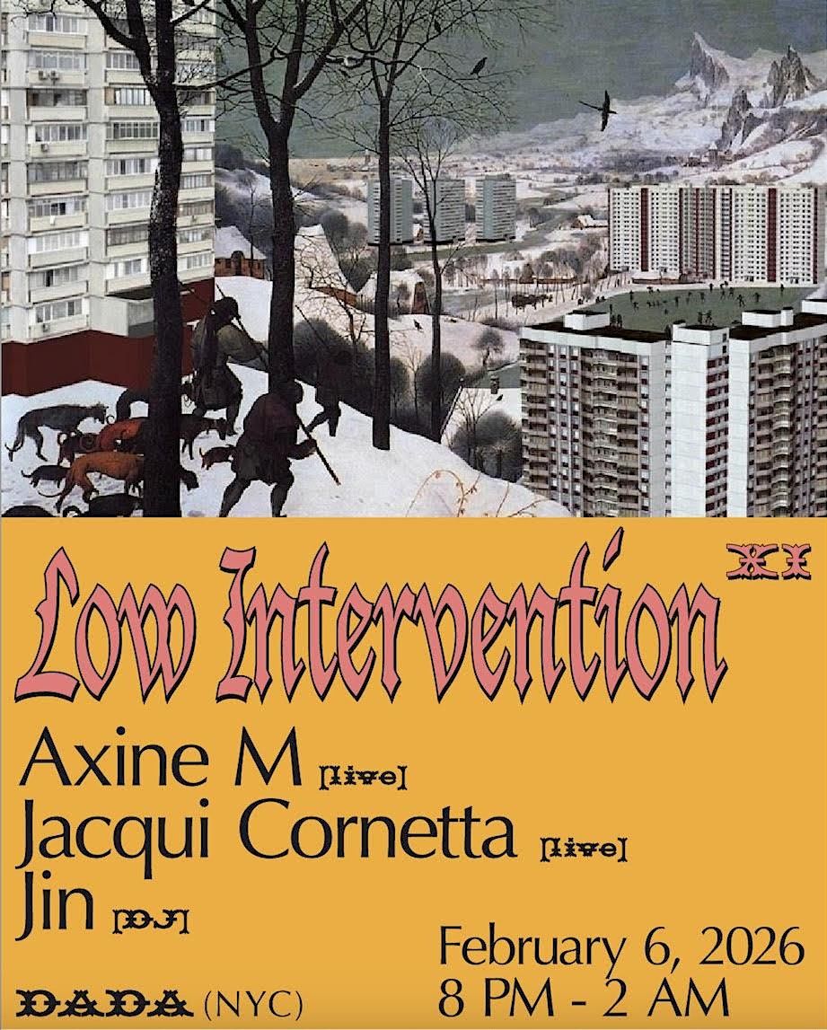 Low Intervention is an experimental music series curated by Annie Garlid, which brings together live sets and DJ sets.