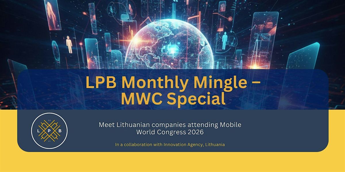 Mobile World Congress Barselonoje – puiki proga atrasti inovacijas ir suburti lietuvių talentus. Todėl LPB pasinaudojus šia proga kviečia į Monthly Mingle – MWC Special, kur subursime mūsų profesionalų klubo narius ir MWC dalyvaujančias Lietuvos įmones jaukiam tinklaveikos vakarui. Šį renginį jums pristato LPB Barcelona ir Lietuvos inovacijų agentūra.
