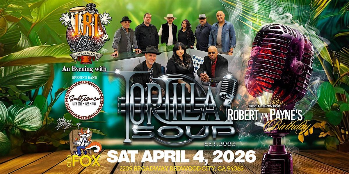Welcome to Club Fox for a night of Tortilla Soup! Get ready to groove on April 4, 2026 at 7:00 PM (Pacific Time). This event promises to be a hot blend of rhythms that will have you dancing all night long. Come out and celebrate Robert Payne's birthday. Don't miss out on this special evening!