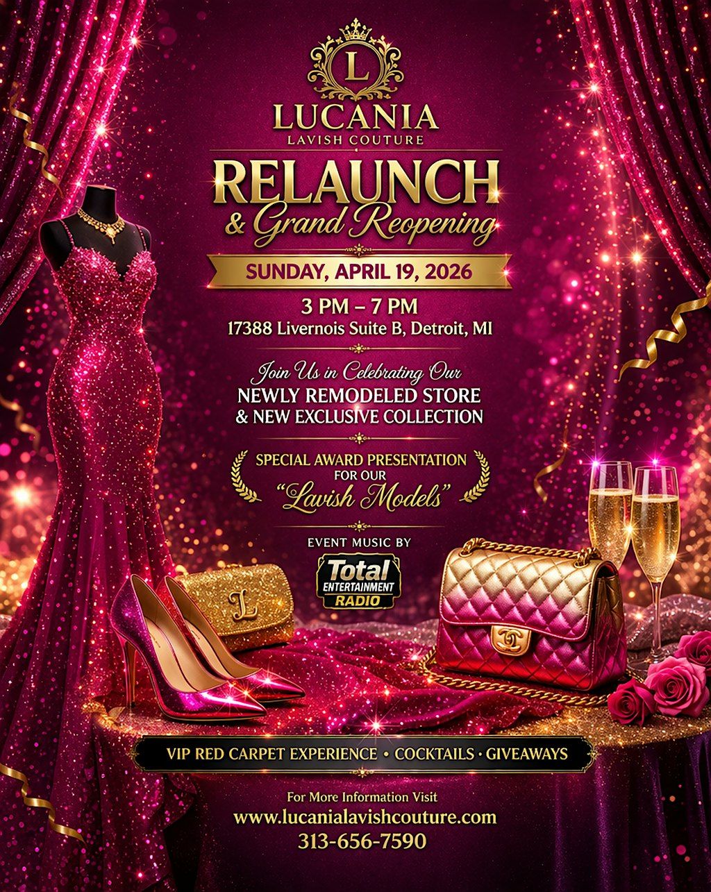 Info: Tour our newly remodeled Fashion House and preview the latest collection. A special award presentation for Lavish Models. Hosted by Lola Lucania and Total Entertainment Radio. VIP red carpet experience with cocktails, giveaways and photo ops. Networking and mingling Detroit's Fashion Elite .