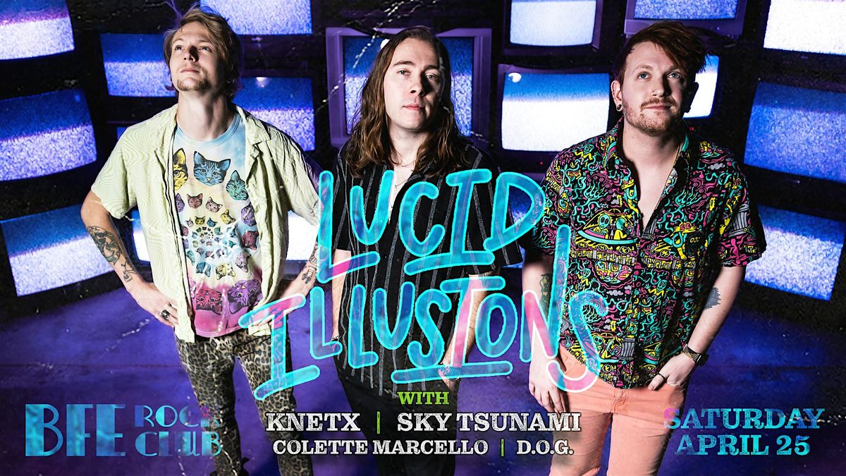 Lucid Illusions returns to BFE Rock Club for a FREE SHOW with KNETX, Sky Tsunami, Colette Marcello, and D.O.G. on Saturday 4/25!!