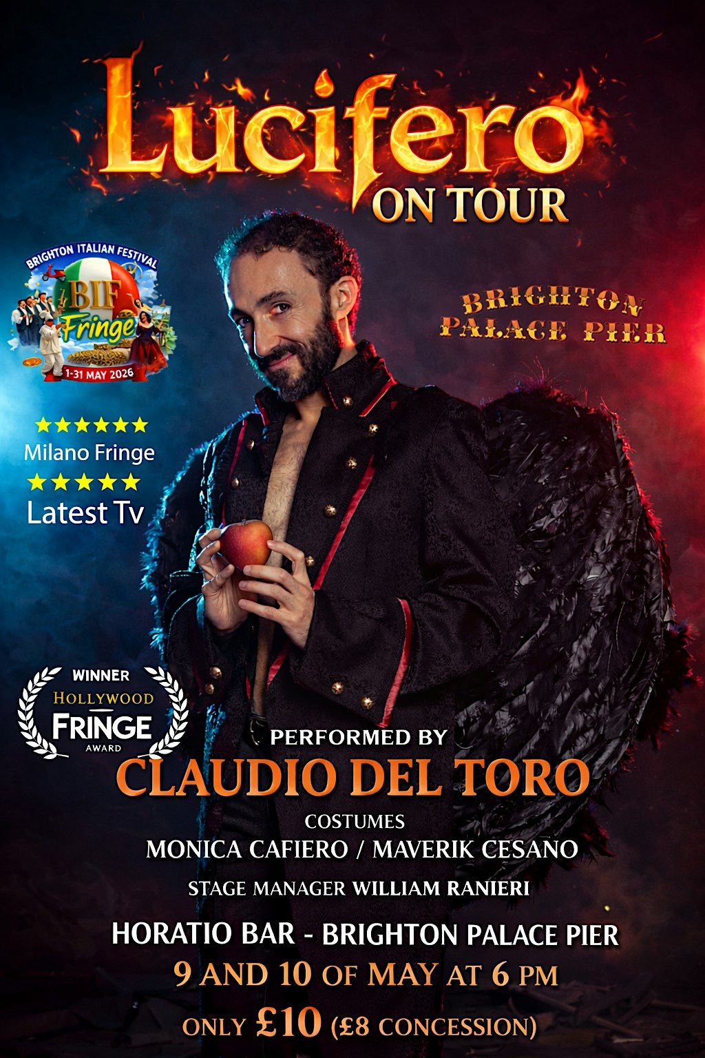 Lucifero on Tour is a sharp, seductive and hilariously provocative solo show exploring the fallen angel’s troubled relationship with Daddy (the Almighty), humanity’s temptations, and the fine line between light and damnation.