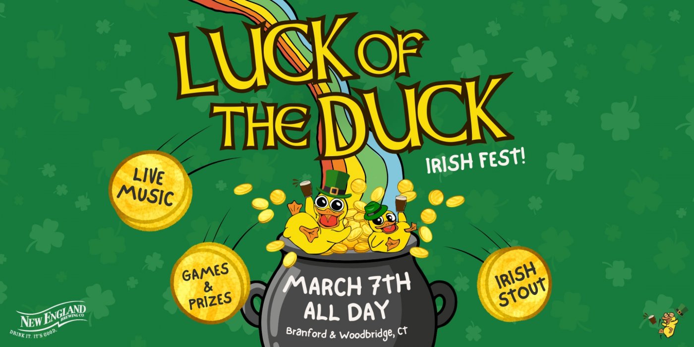 Celebrate St. Patrick’s Day at our Branford location with an afternoon rooted in Irish tradition, community, and a little friendly competition. The Luck of the Duck Fest is family friendly and built for spending the day together, whether you stop in for one pint or stay for the full celebration.