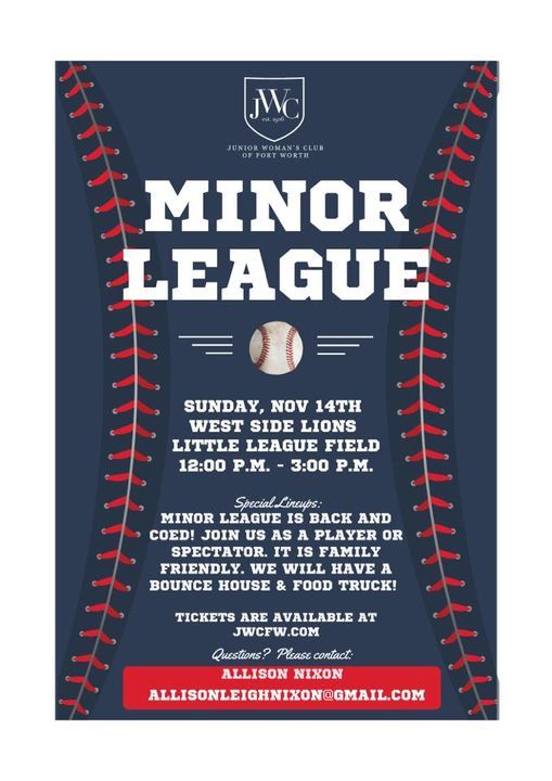 Come watch the game or PLAY if you have the skills! COED Baseball game hosted by Junior Woman's Club of Fort Worth. Tickets for the game are available at jwcfw.com
