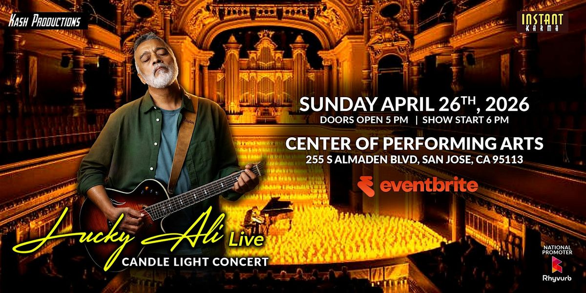 Join us for a special evening with Lucky Ali live in a Candlelight Concert on April 26 in San Jose. Enjoy iconic songs like O Sanam and more in a beautiful, intimate ambiance. Balcony seating has just been opened to accommodate demand. Don’t miss this unforgettable musical experience.