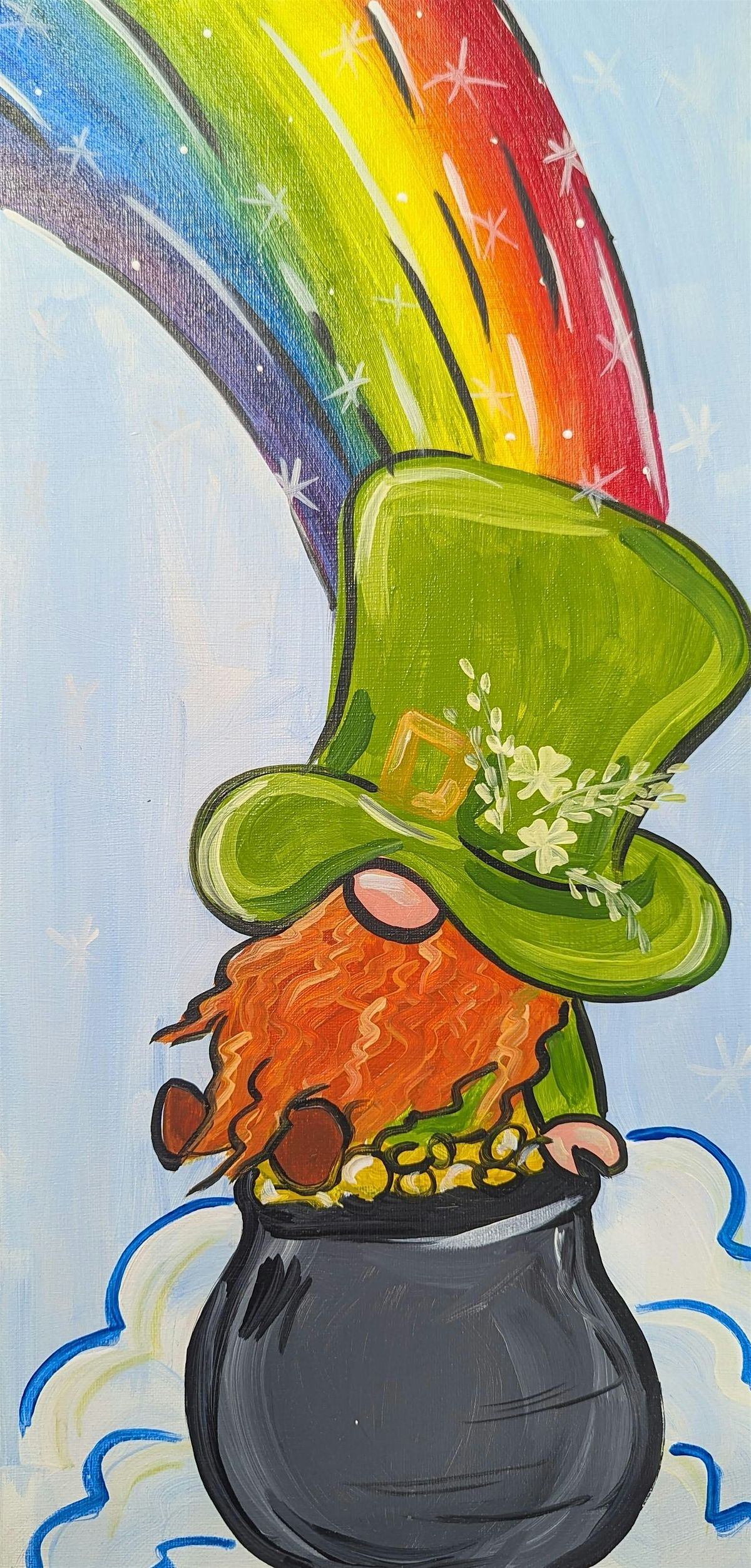 In this relaxed, step-by-step session, you’ll create your own festive Lucky Gnome on canvas. We’ll guide you through sketching, layering paint, blending colors, and adding those fun little details that bring your gnome to life.