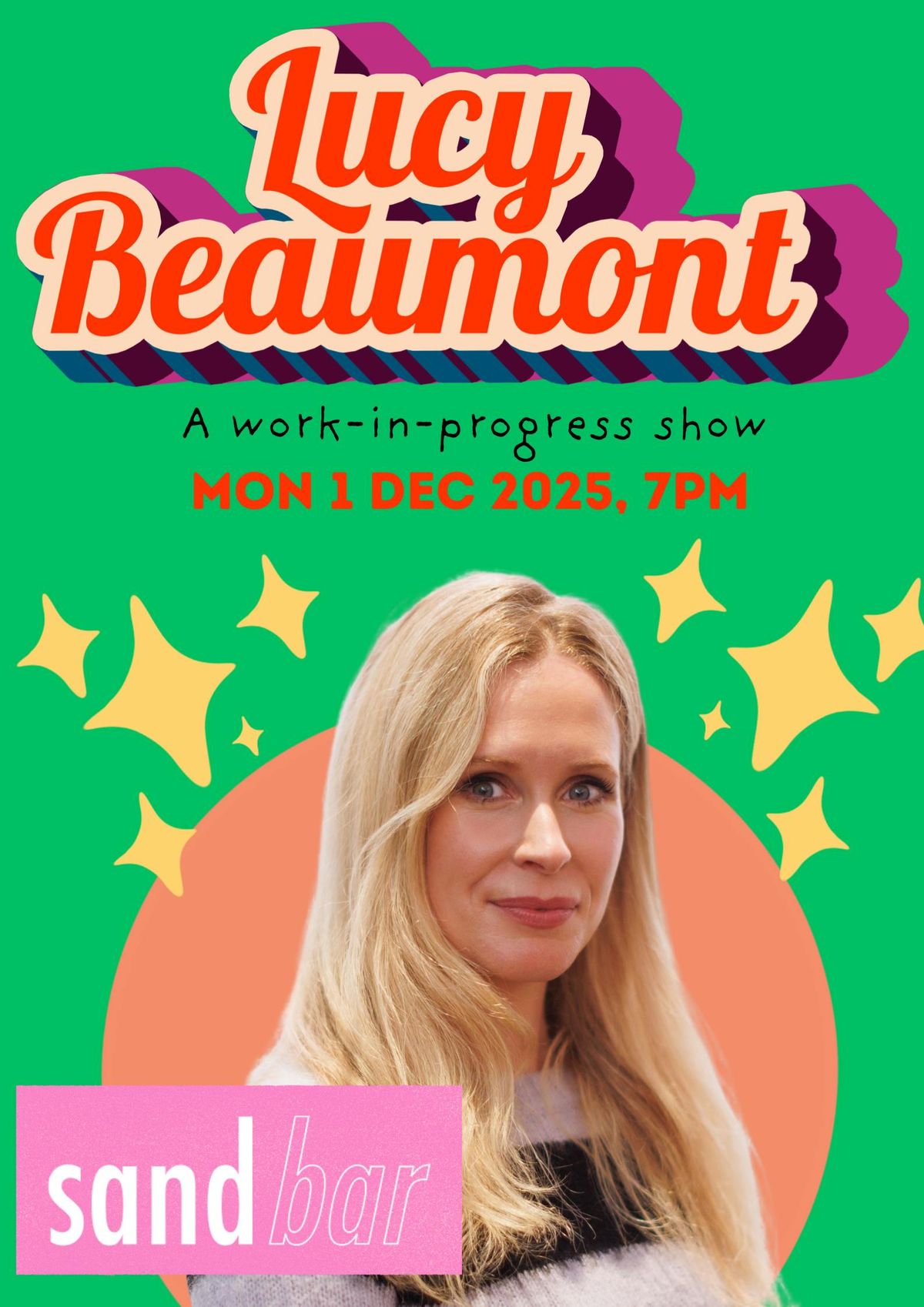 Fresh from her appearance in BBC’s Celebrity Traitors, award-winning comedian, Lucy Beaumont, is going on tour in 2026, and bringing her work-in-progress to Sandbar Withington, Manchester.Expect stories about modern life, half-formed thoughts and observing the extraordinary in the deeply ordinary.