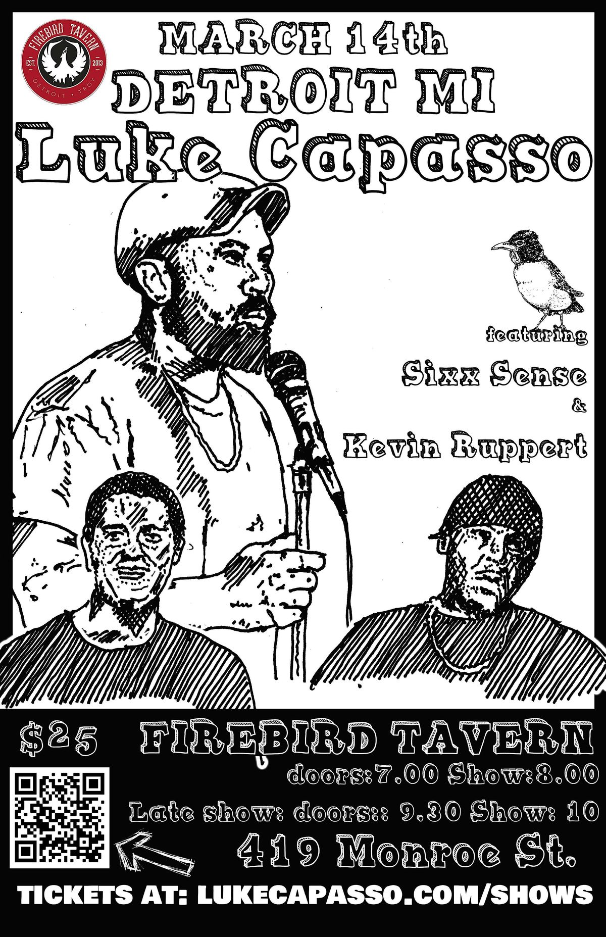 Luke Capasso will be headlining the Firebird Tavern with the talented duo of Sixx Sense (Cinci) and Kevin Ruppert (Dayton)