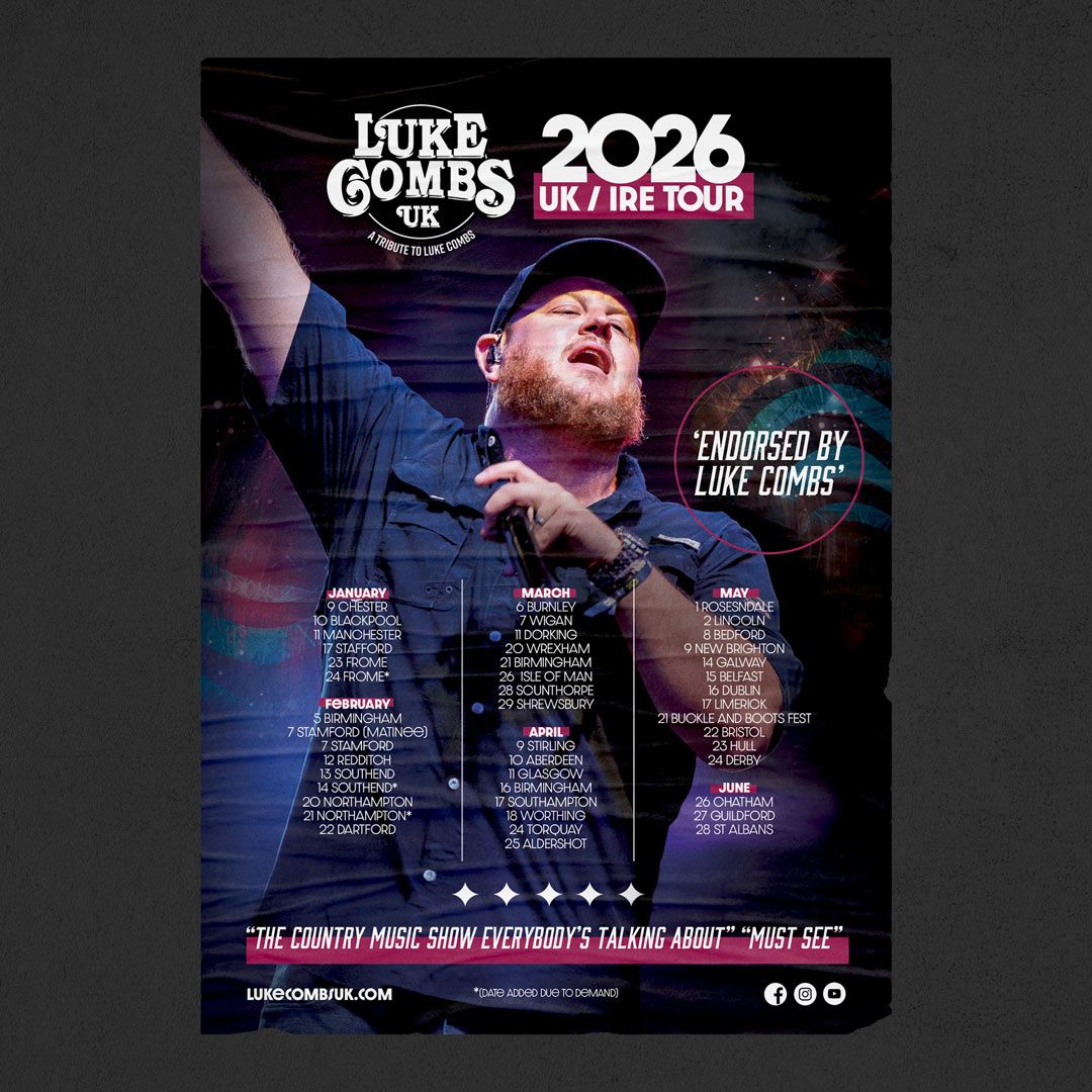 Tribute to Luke Combs at O2 Academy Bristol✨ Embark on an extraordinary journey at Luke Combs UK - Tribute to Luke Combs Bristol Tickets, where every moment promises to be unforgettable! 🌟 Imagine of transforming O2 Academy Bristol in the heart of Bristol, EN into a realm of endless possibilities. 📅 Join us on May 22nd, 2026 at 07:00 PM for an experience that will challenge your imagination and exceed your expectations. 🎯 This carefully curated event combines the finest elements of entertainment, innovation, and community spirit. Whether you're an adventure seeker, culture enthusiast, or someone looking for unique experiences, this event offers something special for everyone. ✨ With tickets available at 202.64 EUR, your journey awaits. 🎊 Don't miss this chance to be part of something extraordinary!