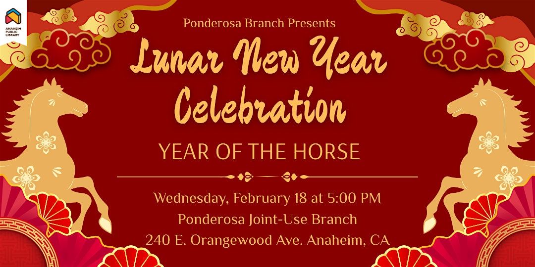 Celebrate the Year of the Horse at Ponderosa Branch Library! Enjoy a special storytime, a performance by the Western High School Lion Dance Team, and fun activities for all ages.