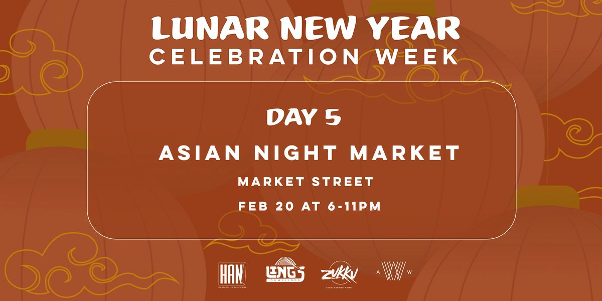 Enjoy a night under the stars on Friday, February 20 for our Asian Night Market! Stroll along Market Street and shop from a variety of vendors from 6-11pm.