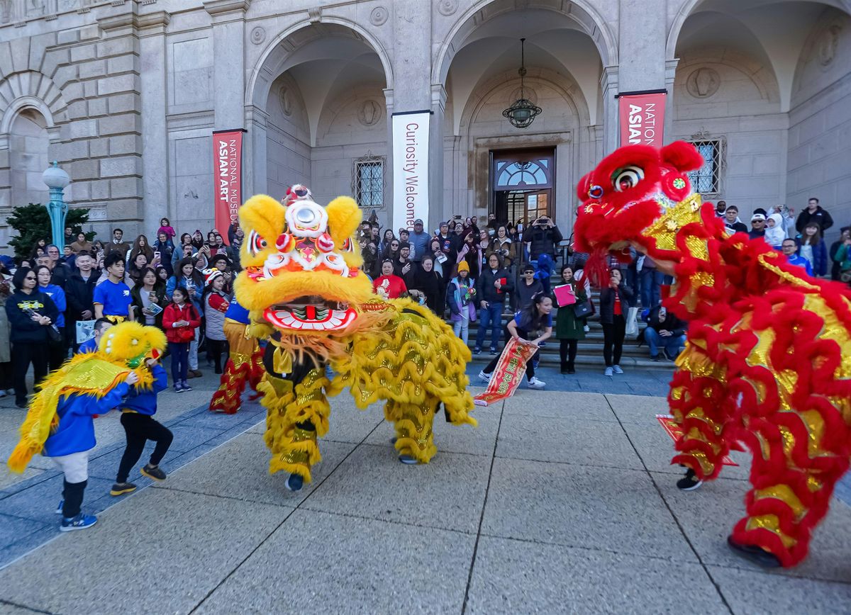 Lion Dances by Yee Fung Toy Association on the National Museum of Asian Art's outdoor plaza