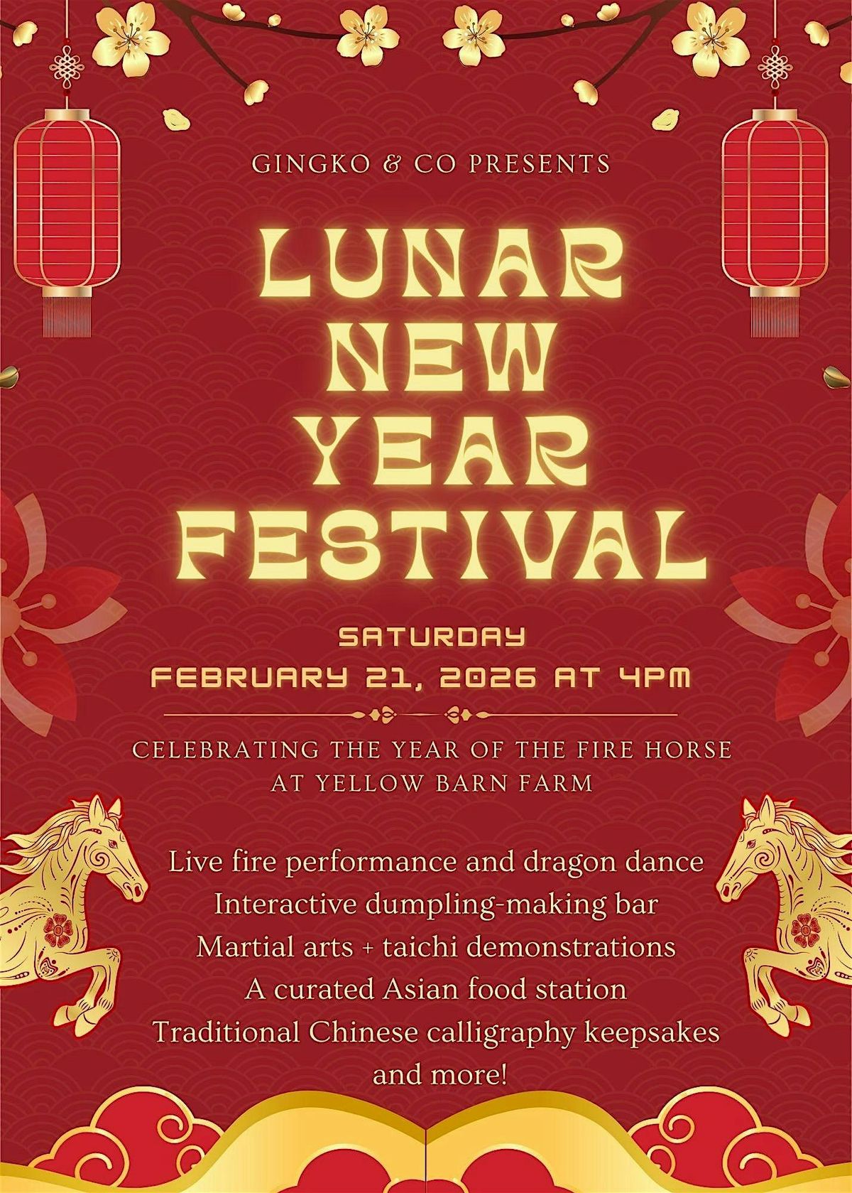 Step into a vibrant, multisensory Lunar New Year festival designed to ignite joy, abundance, and connection. This event brings together traditional arts, interactive workshops, and delicious Asian cuisine—all crafted to honor the spirit of the New Year. A percentage of the proceeds will be donated to local agriculture non-profits.