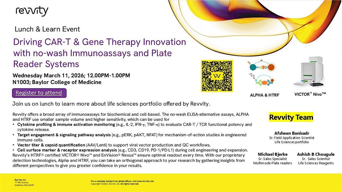 Lunch and Learn by Revvity at Baylor College of Medicine (Center for CGT).