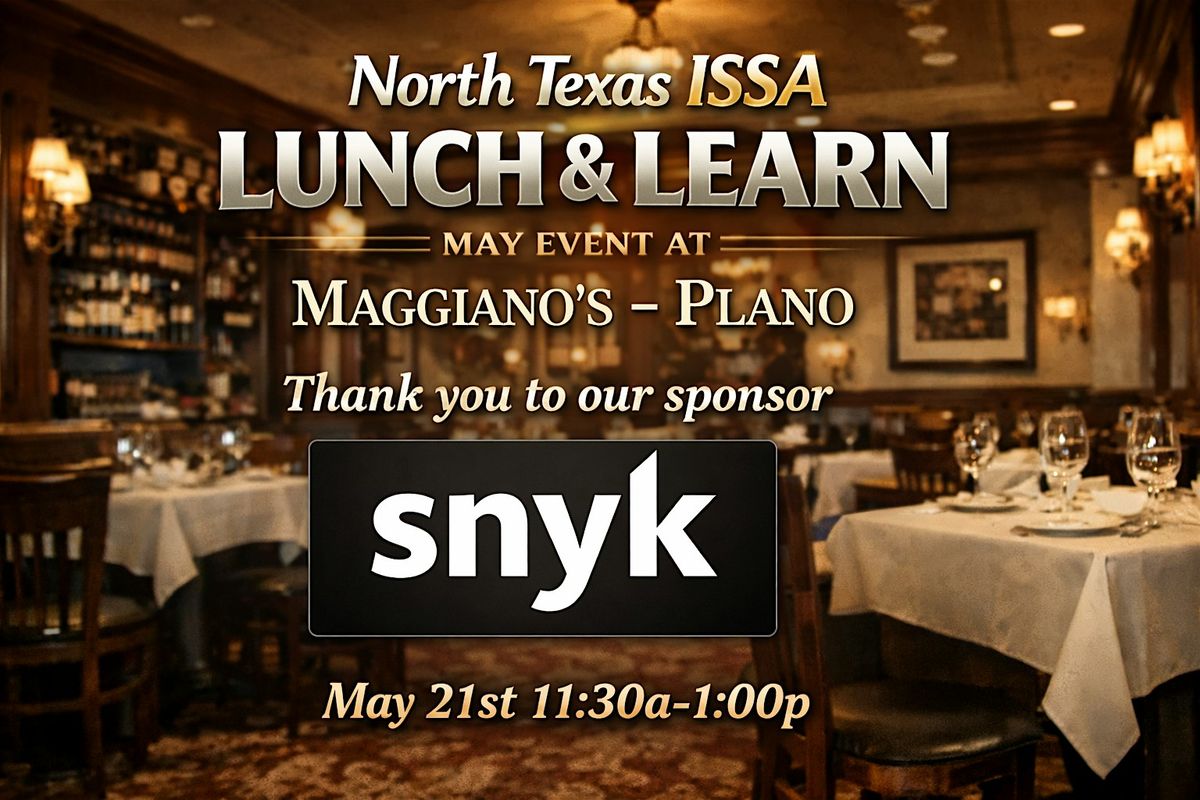 Come join us on Thursday, May 21, 2026 for our next North Texas ISSA Lunch & Learn. REGISTRATION REQUIRED as seating is limited.