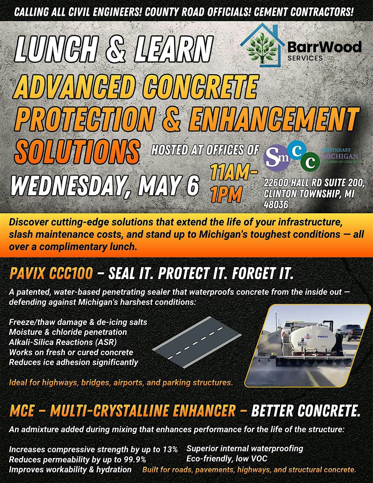 Discover cutting-edge solutions that extend the life of your infrastructure, slash maintenance costs, and stand up to Michigan's toughest conditions — all over a complimentary lunch.