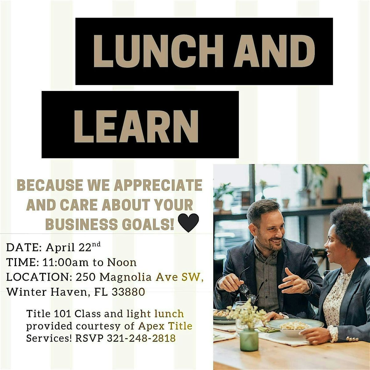 Join us for a casual and fun Lunch and Learn session at 250 Magnolia Ave. It’s a great chance to grab some food, meet new people, and pick up cool tips and tricks in a relaxed setting.