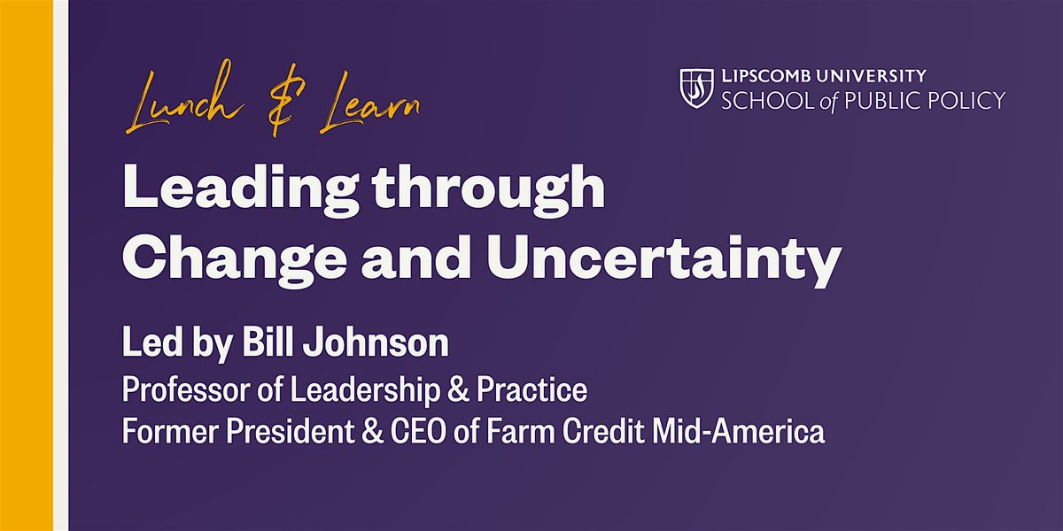 Join Lipscomb's School of Public Policy on Wednesday, March 4, for a Lunch and Learn session with Professor of Leadership and Practice, Dr. Bill Johnson, to learn leadership lessons on "Leading through Change and Uncertainty."