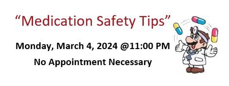 "Medication Safety Tips"Monday, March 4, 2024 @11:00 AM