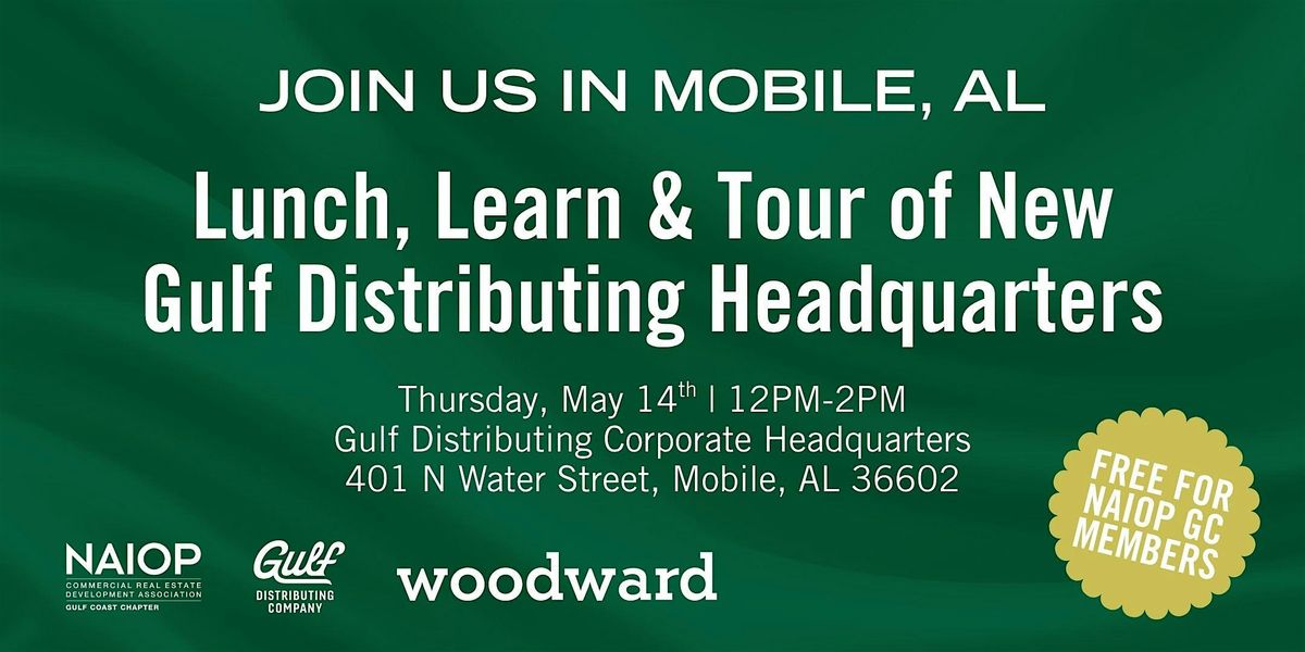 Join NAIOP Gulf Coast for an exclusive lunch and guided tour of the new Gulf Distributing headquarters in downtown Mobile, AL's hosted in partnership with Gulf Distributing and Woodward Design + Build.