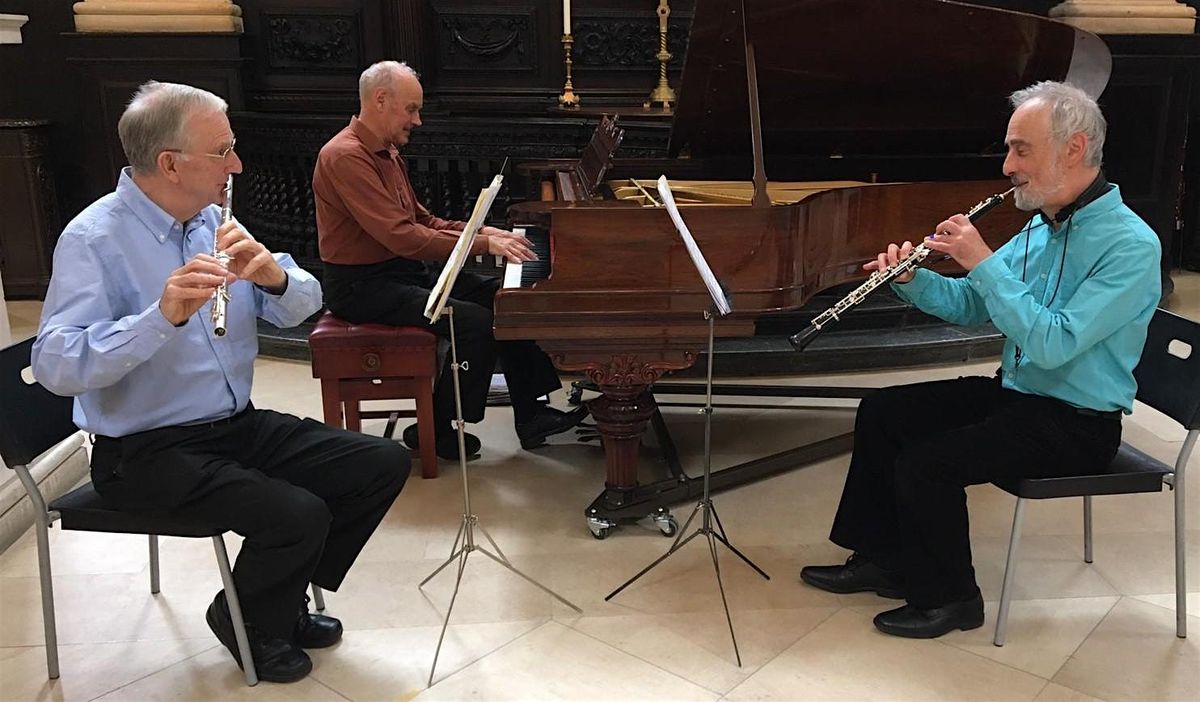 The Galliard Trio is comprised of Andrew Morris (flute), Martin White (oboe and cor anglais), and Alec Forshaw (piano and bassoon).