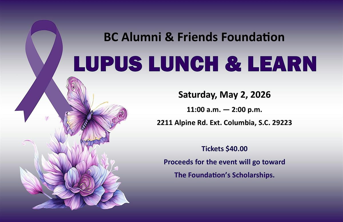 Come join us for a fun and informative event! The Lupus Lunch & Learn hosted by the BC Alumni & Friends Foundation is a great opportunity to gather with old friends and make new connections. Enjoy a delicious lunch while learning more about lupus and how you can support those affected by this condition. Don't miss out on this chance to engage with the community and contribute to a good cause!