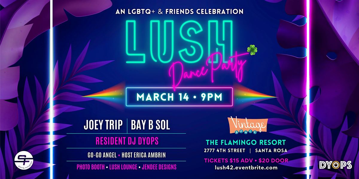 Come Correct or Don't Come At All: LUSH is a safe, inclusive space centering LGBTQIA+ love, bodies, and joy. Anyone bringing racism, transphobia, fatphobia, or hate of any kind will be escorted out to the end of the rainbow — no pot of gold and no lucky charms.