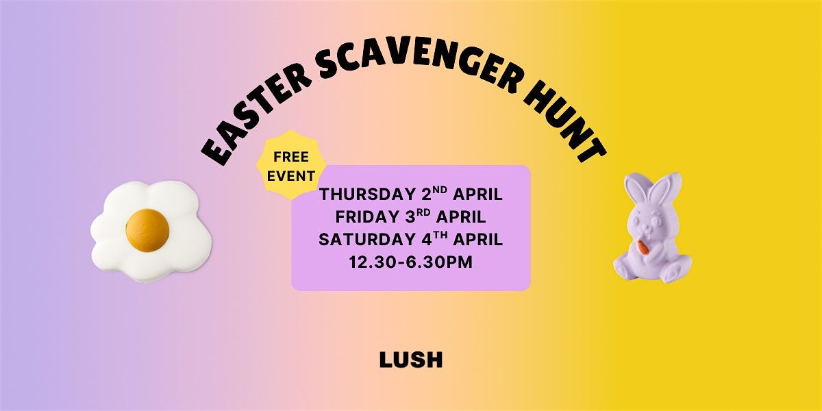 LUSH Oxford Street Spa invites you to join our easter scavenger hunt and explore our Easter range. Hunt through the store for activity stations and complete the games and challenges to earn a stamp. Find each of the stations and collect all 4 stamps to receive a lucky dip prize.