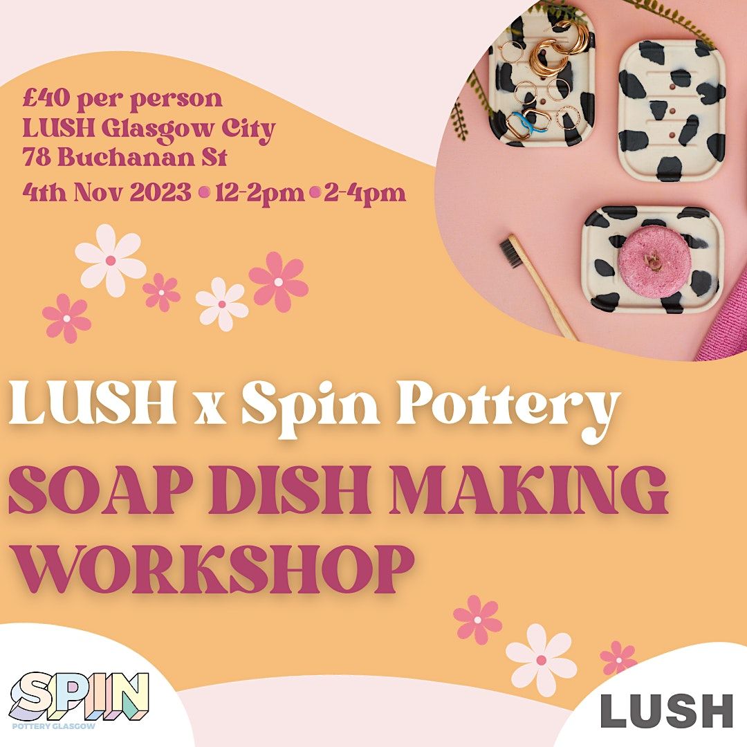 Come down to LUSH Glasgow City to meet the wonderful folks at Spin Pottery who will teach you how to make your own ceramic soap dish! This two hour session will take you through the pottery process and you'll have your very own, handmade creation! Once crafted, the team will take your design to be fired and you'll get to collect your new craft and take it home.
