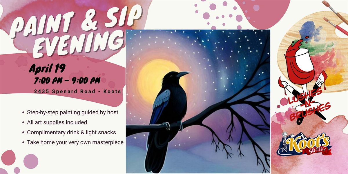 After a short break, Lushes N Brushes returns to Koots with a bold, Alaska-inspired paint night featuring one of the state’s most iconic creatures... the raven.