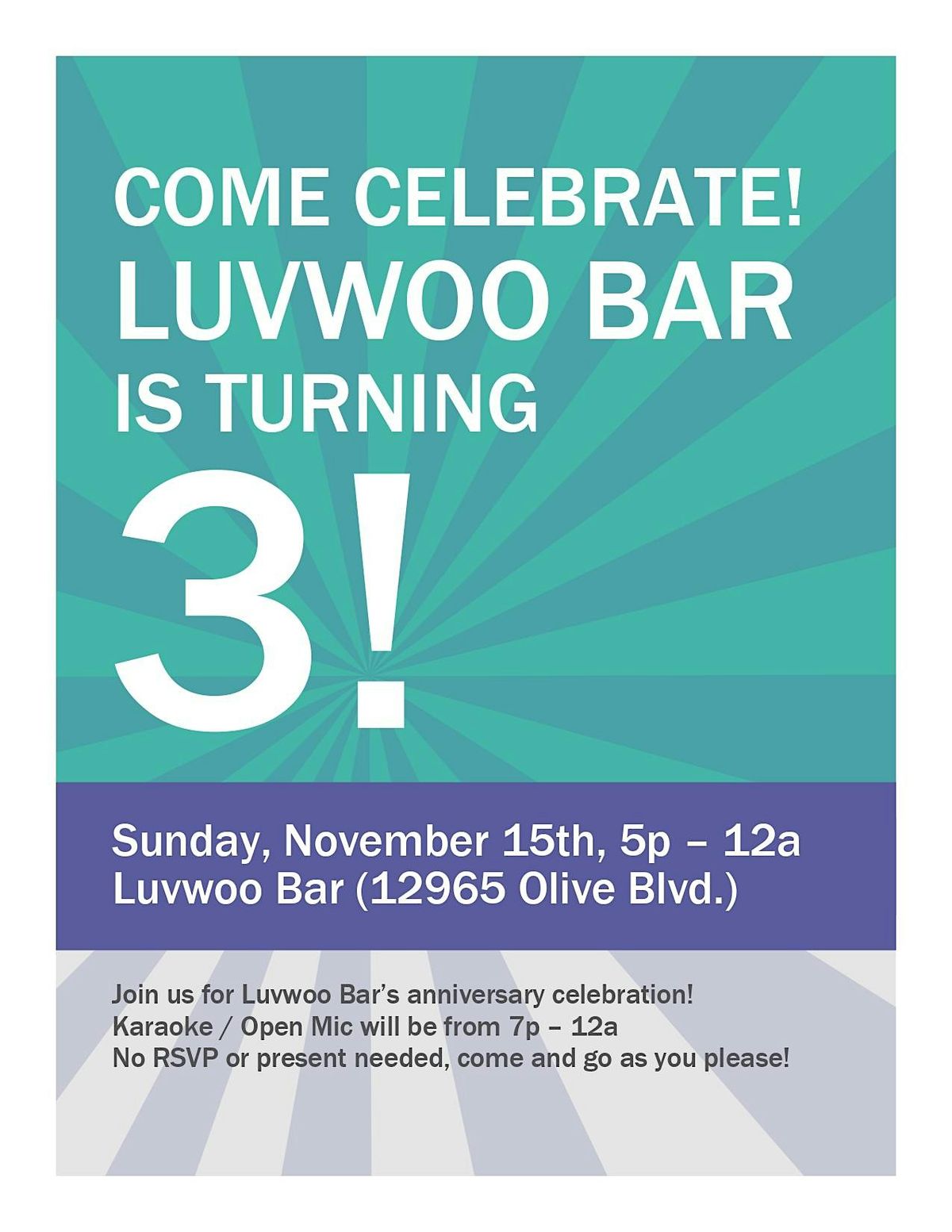 Luvwoo Bar's 3 Year Anniversary Celebration (FREE)