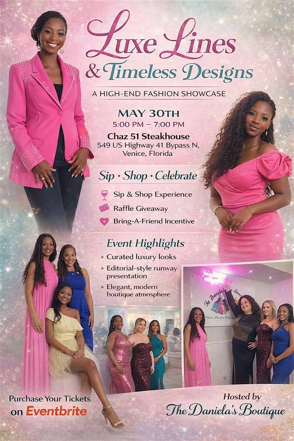 Grab your seats today for a night out. Enjoy dinner and a high-end fashion show from Daniela's Boutique at Chaz 51 Steakhouse in Venice!About this Event